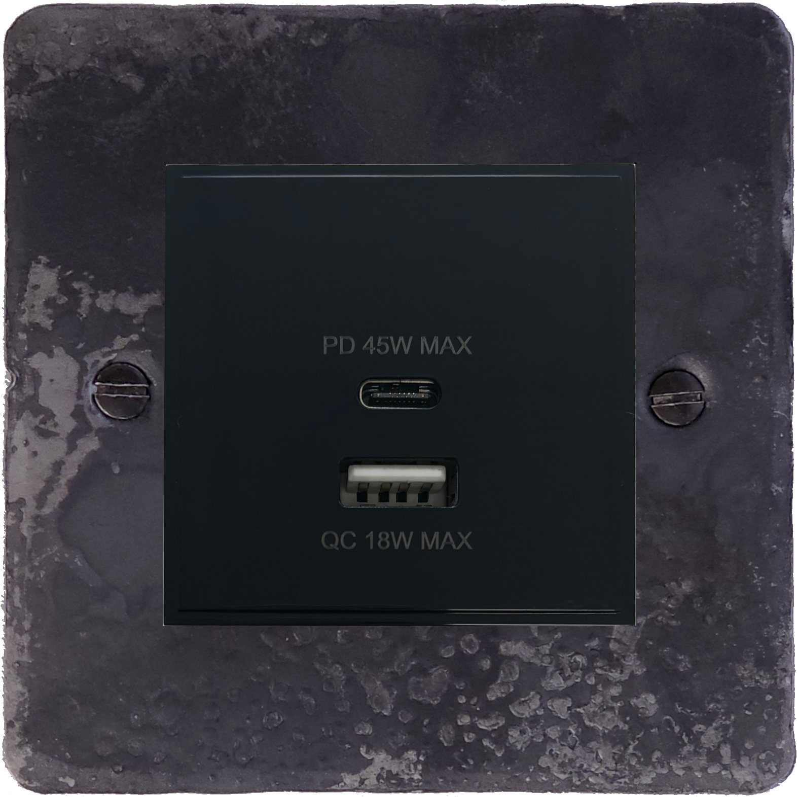 Flat Rustic USB Charger (Dual USB A + C Quick Charge) (1 Gang/Black Insert) - G+H FR43B