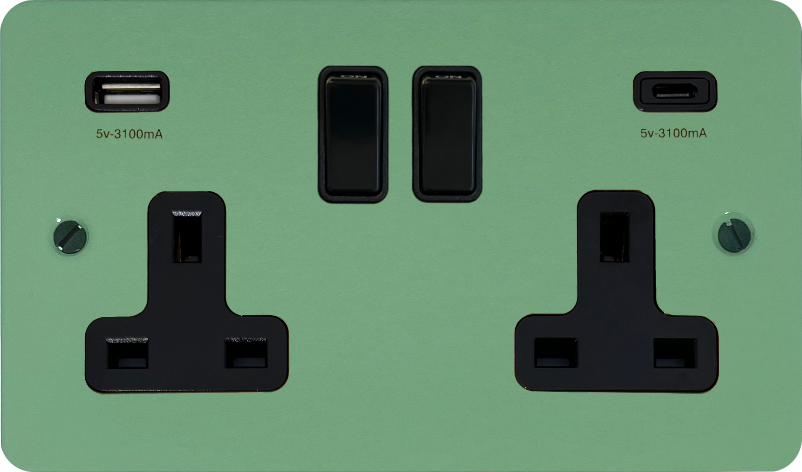 Flat Sage Green Double Socket with USB (2 Gang/USB-A and USB-C/Black Switch) - G+H FSG911B