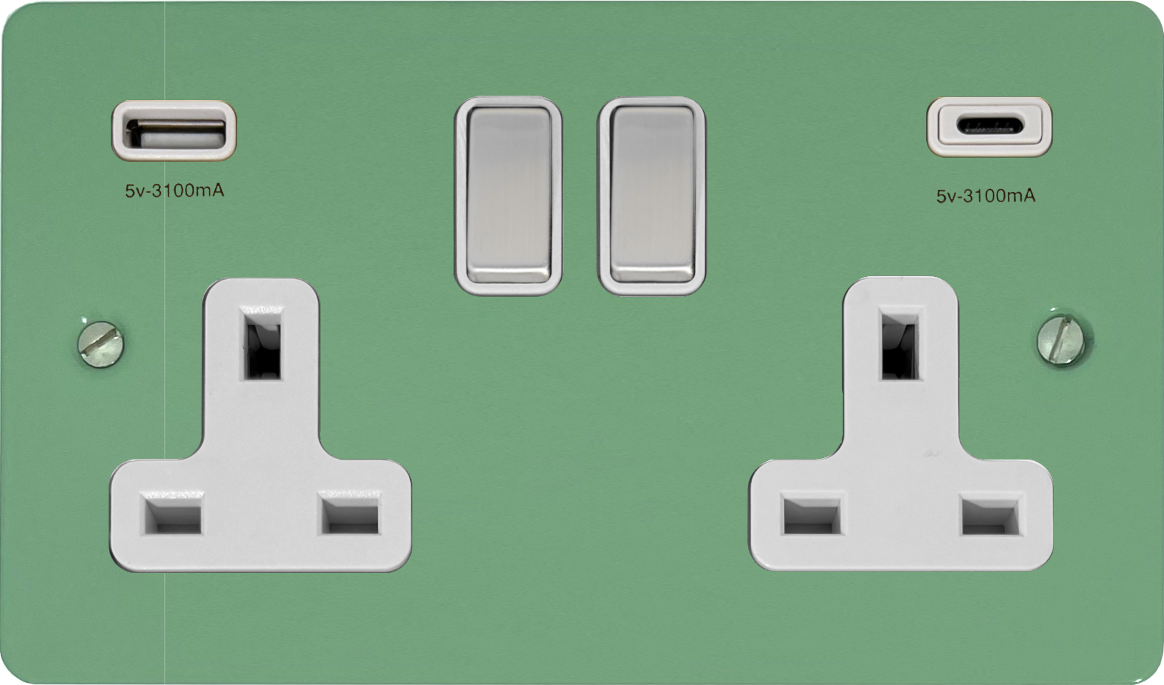Flat Sage Green Double Socket with USB (USB-A and USB-C/Steel Switch/White Inserts) - G+H FSG2911-SC