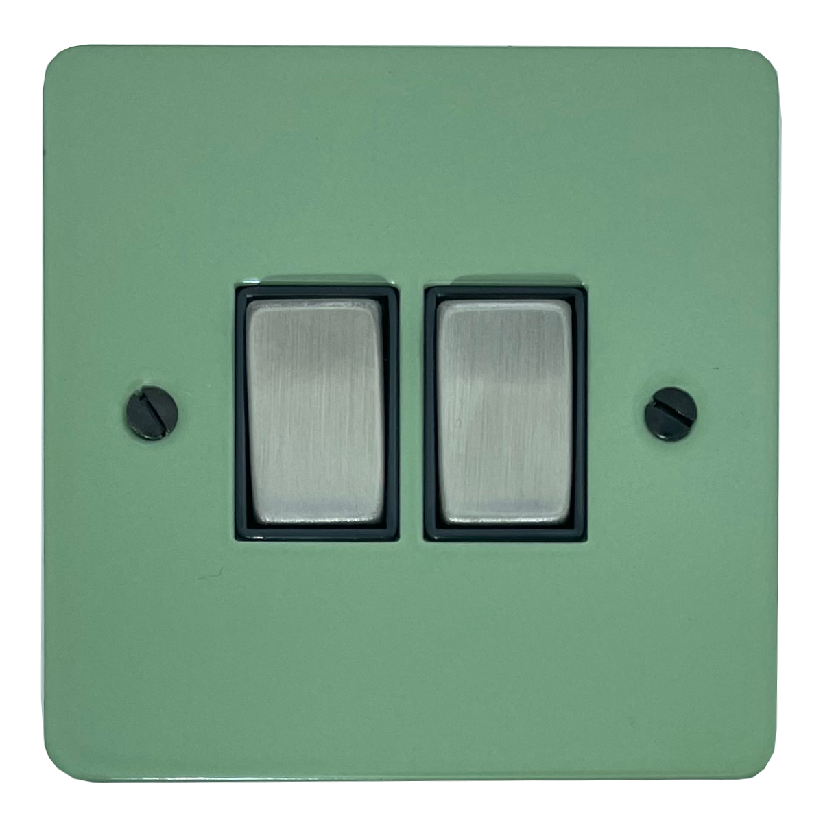 Flat Sage Green Light Switch (2 Gang/Black Insert/Steel Switches) - G+H FSG302