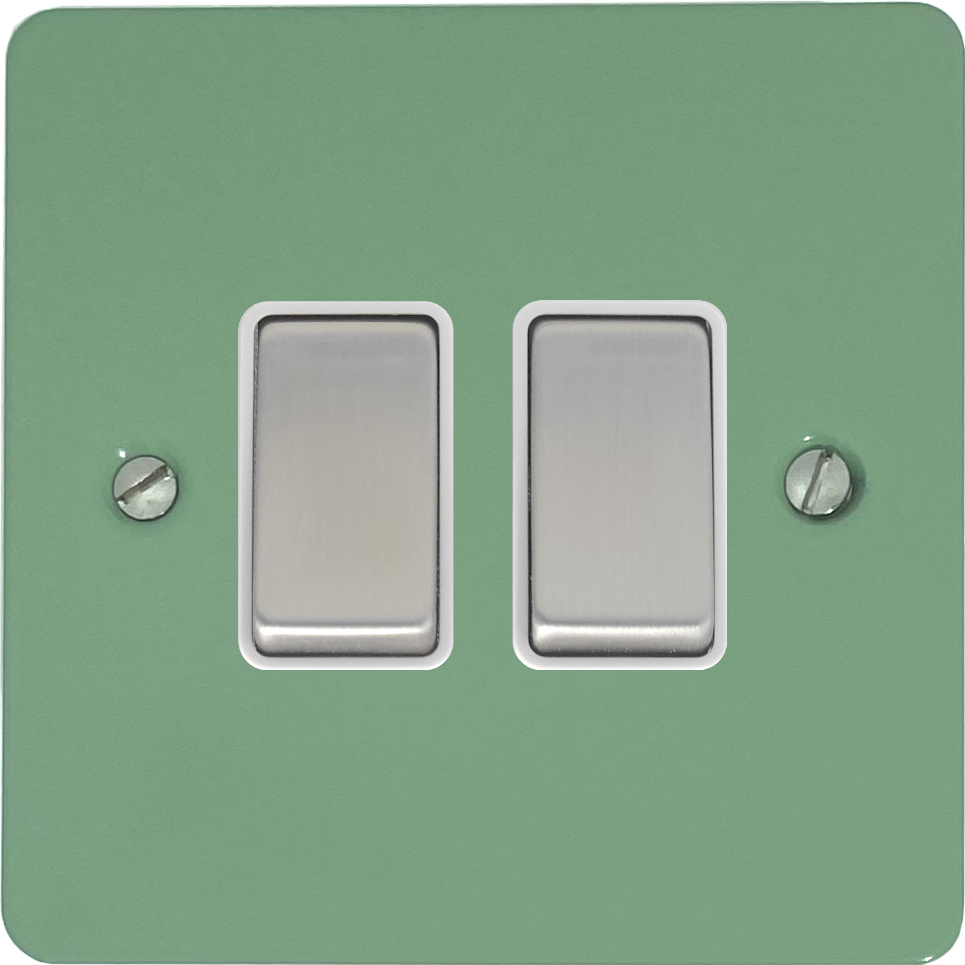 Flat Sage Green Light Switch (2 Gang/White Insert/Steel Switches) - G+H FSG202-SC