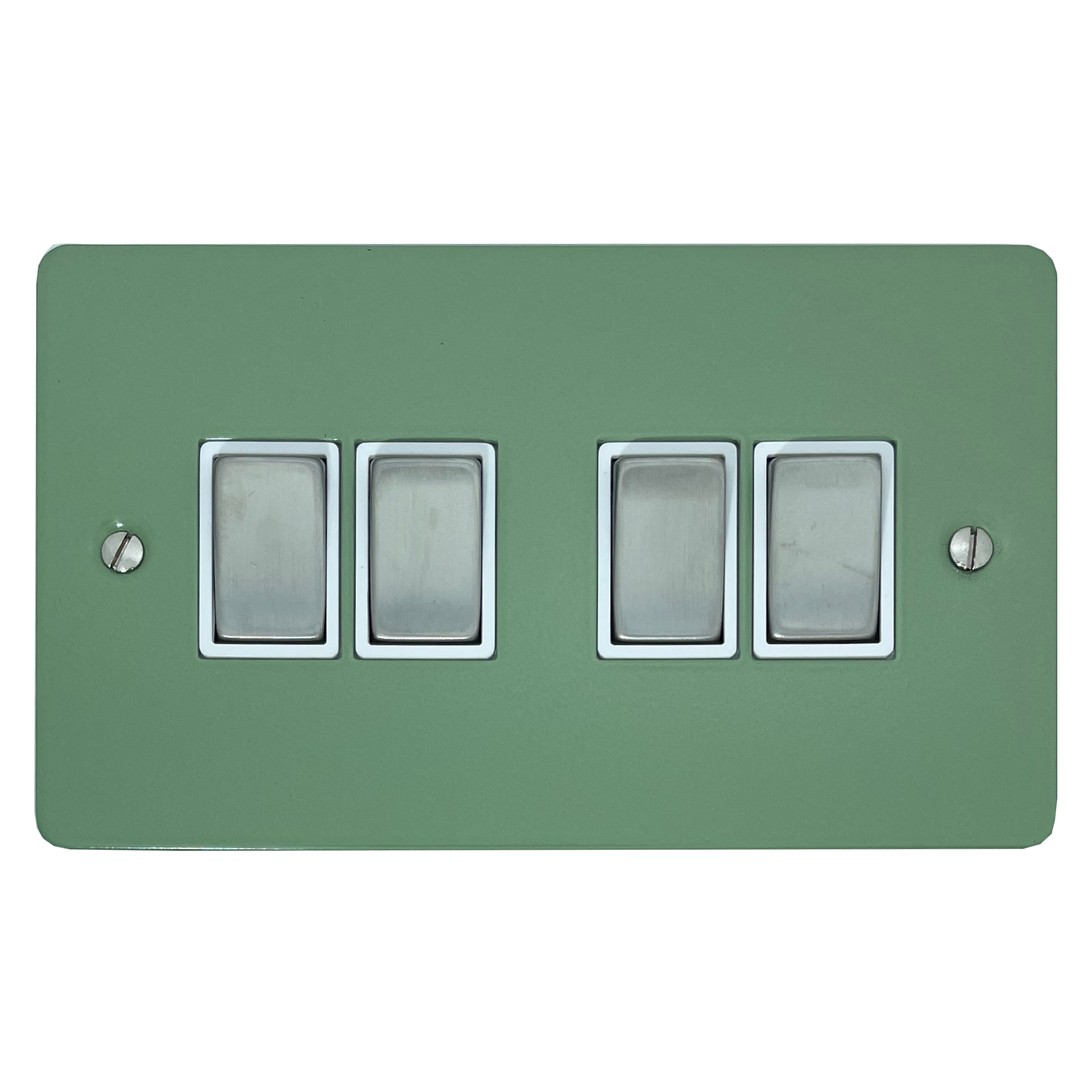 Flat Sage Green Light Switch (4 Gang/White Insert/Steel Switches) - G+H FSG204