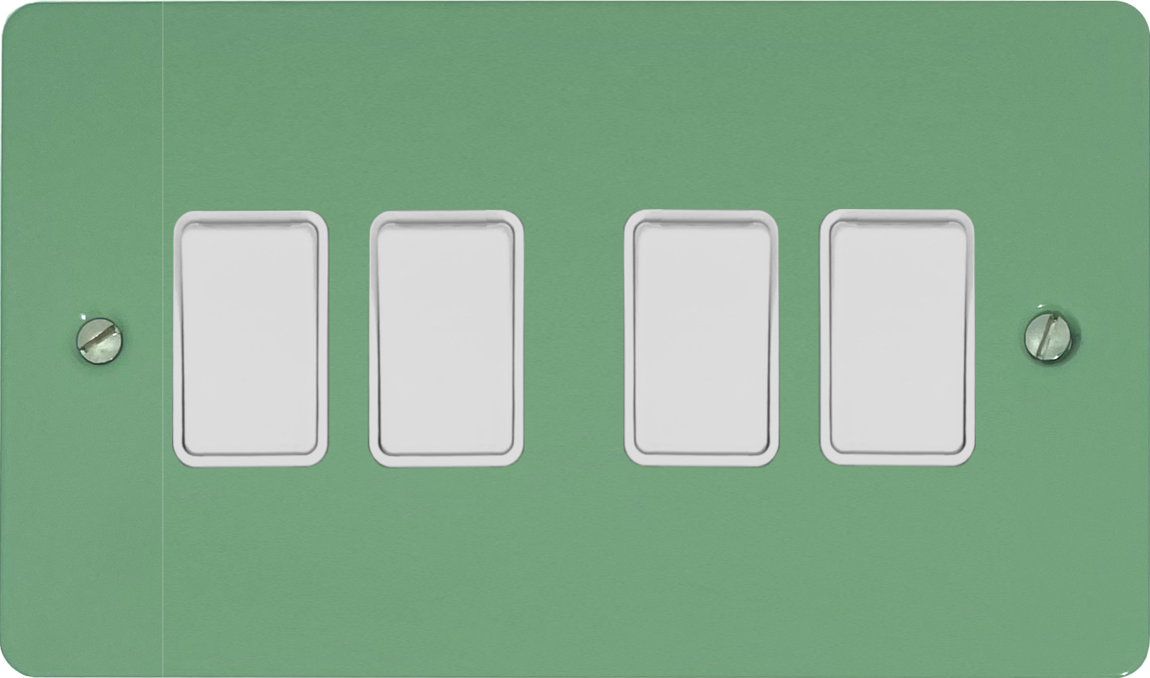 Flat Sage Green Light Switch (4 Gang/White Switches) - G+H FSG4W