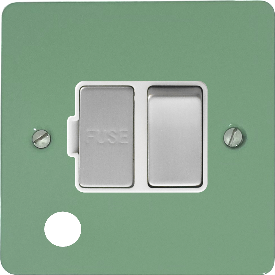 Flat Sage Green Switched Fused Spur with Flex Outlet (White Insert/Satin Chrome Switch) - G+H FSG256-SC