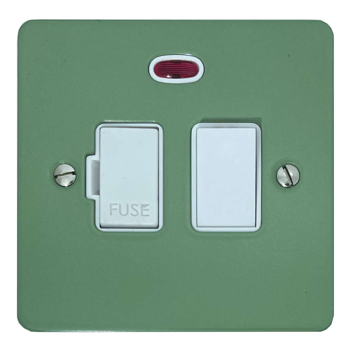 Flat Sage Green Switched Fused Spur with Neon (White Insert/White Switch) - G+H FSG27W