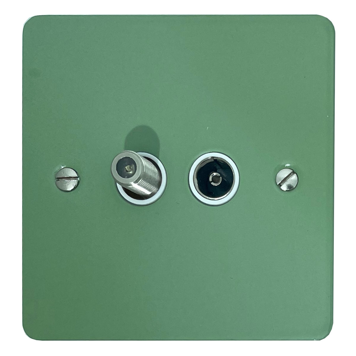 Flat Sage Green TV/Satellite Socket (White Insert) - G+H FSG38W