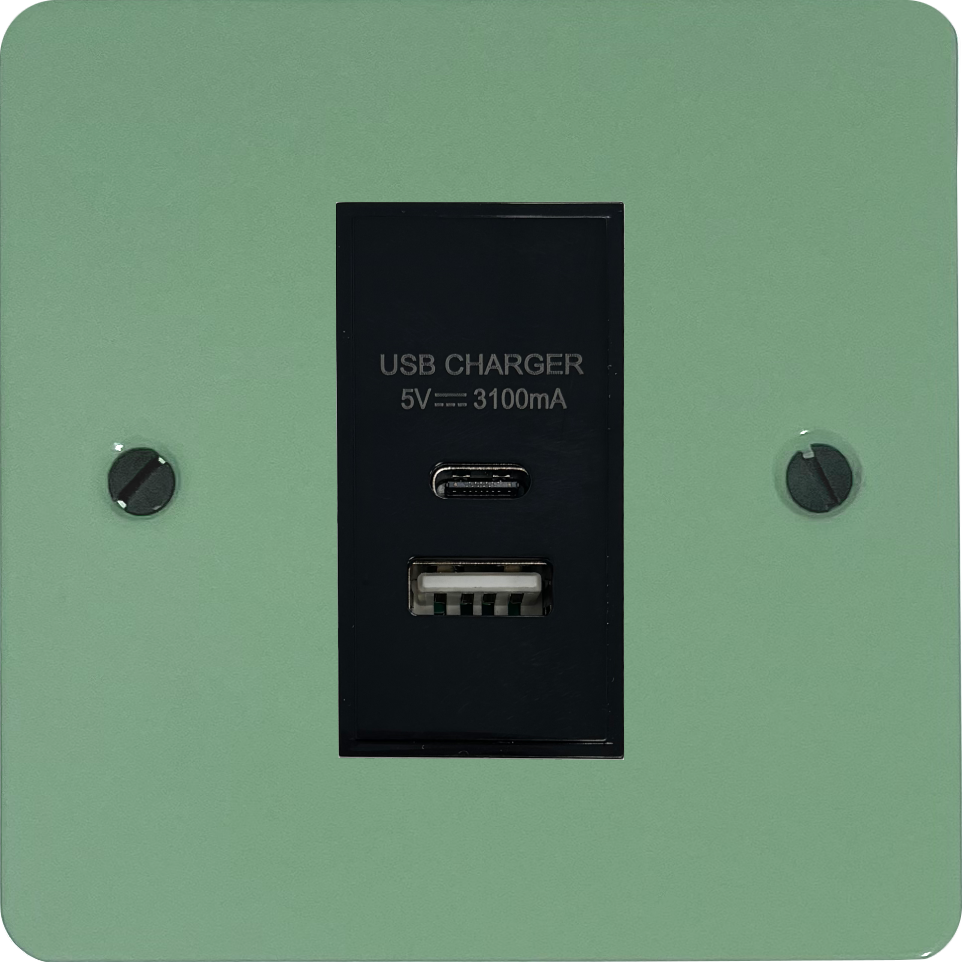 Flat Sage Green USB Charger (USB-A and USB-C) (1 Gang/Black Insert) - G+H FSG41B