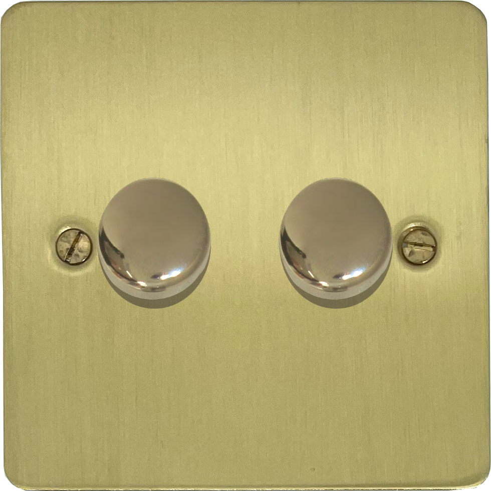 Flat Satin Brass Dimmer (2 Gang/400W)
