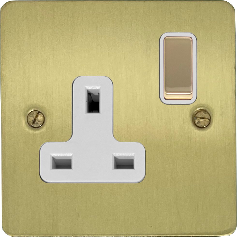 Flat Satin Brass Socket (1 Gang/White Inserts) - G+H FSB209