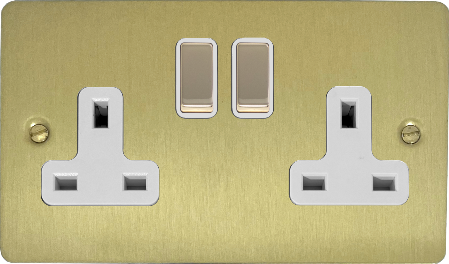 Flat Satin Brass Socket (2 Gang/White Inserts) - G+H FSB210