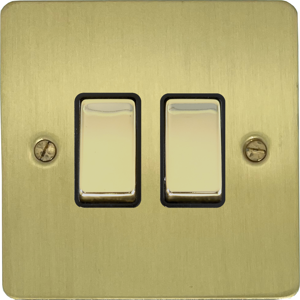 Flat Satin Brass Switch (2 Gang) - G+H FSB302