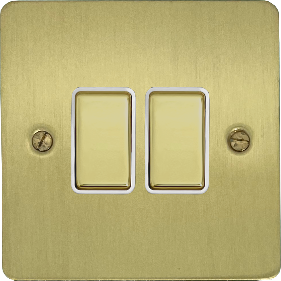 Flat Satin Brass Switch (2 Gang/White Inserts)