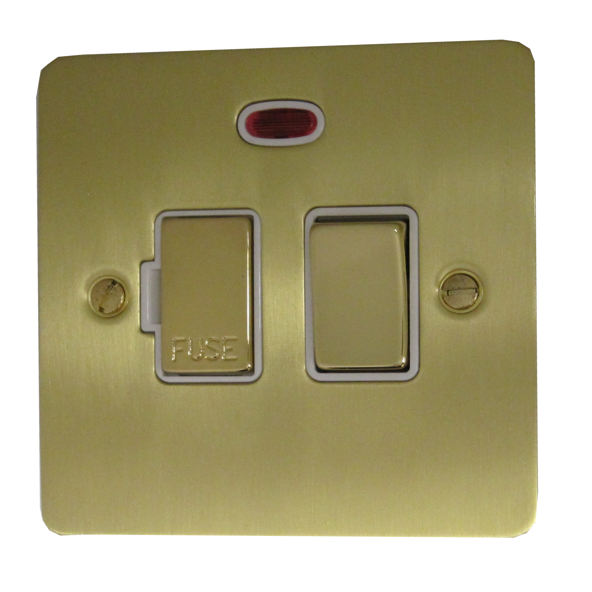 Flat Satin Brass Switched Fused Spur - Neon (White Inserts) - G+H FSB227