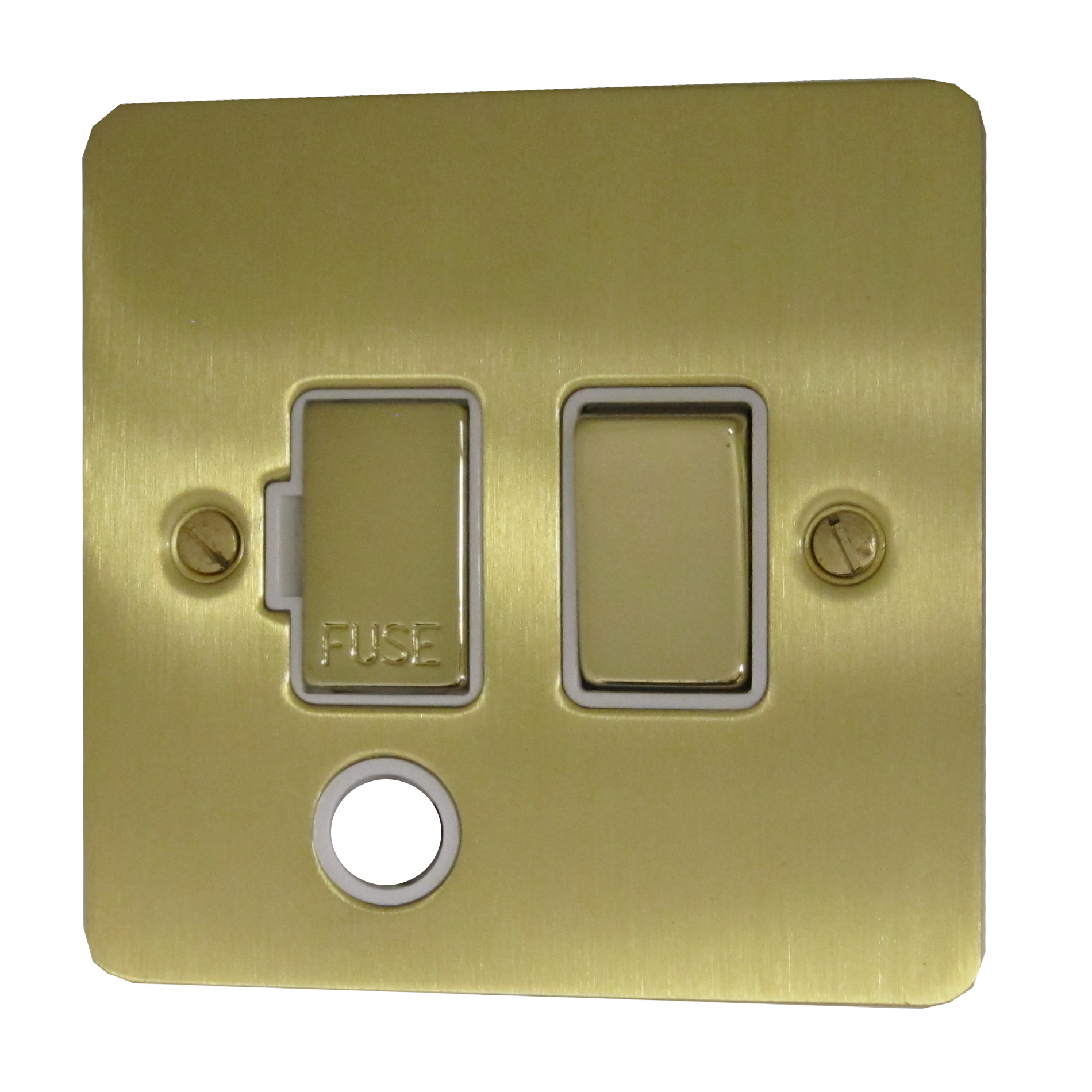 Flat Satin Brass Switched Fused Spur with Flex Outlet (White Inserts) - G+H FSB256