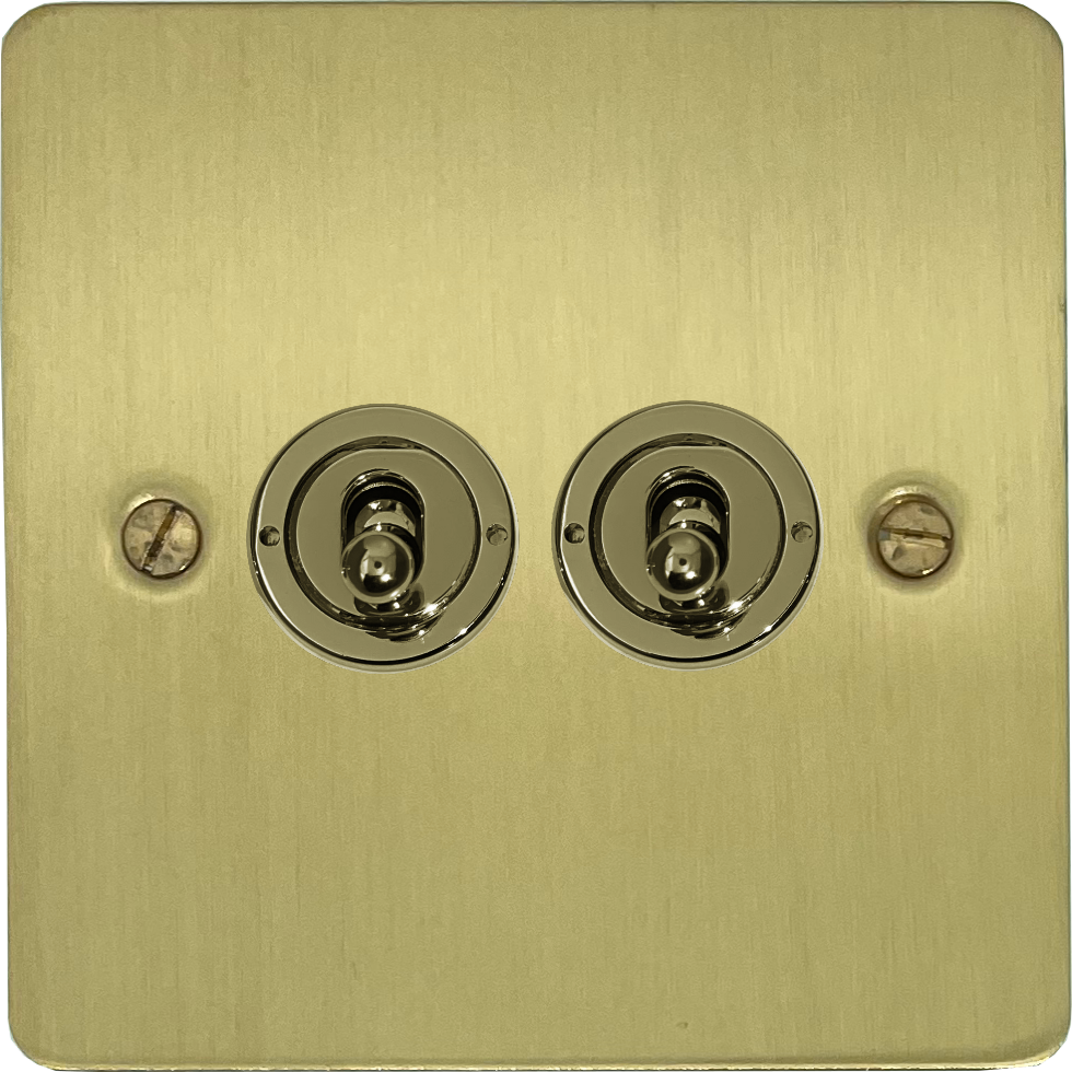 Flat Satin Brass Toggle Switch (2 Gang) - G+H FSB382