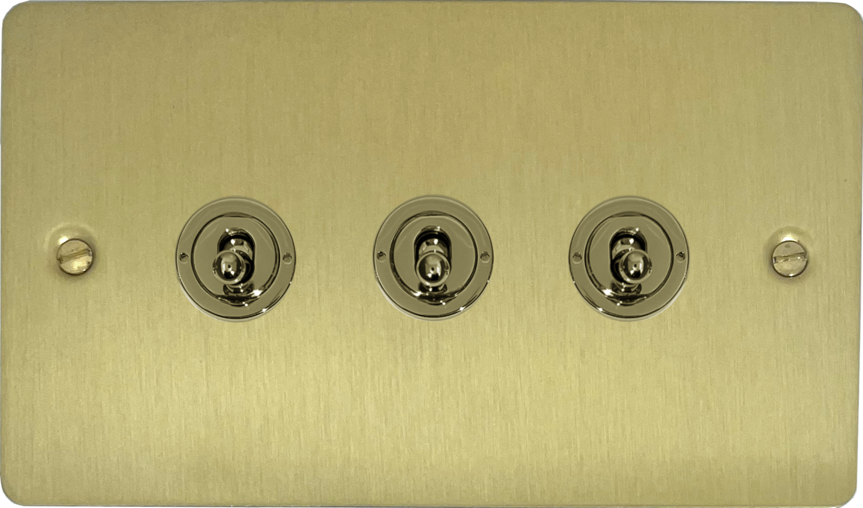 Flat Satin Brass Toggle Switch (3 Gang) - G+H FSB383