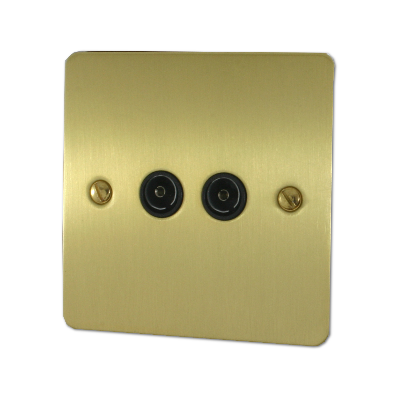 Flat Satin Brass TV Socket (2 Gang) - G+H FSB36B