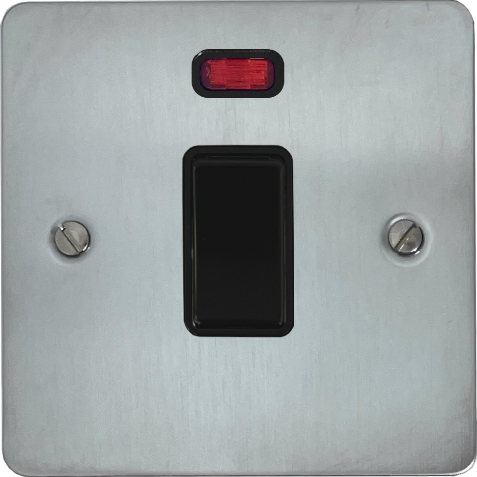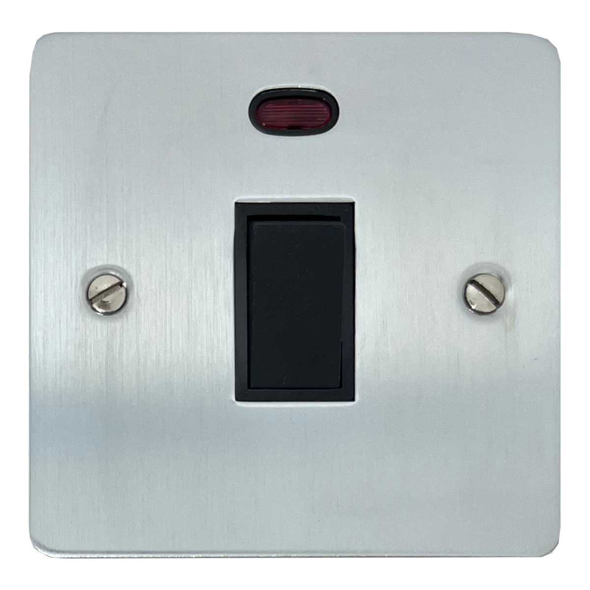 Flat Satin Chrome 20A DP Switch with Neon (Black Switch) - G+H FSC26B