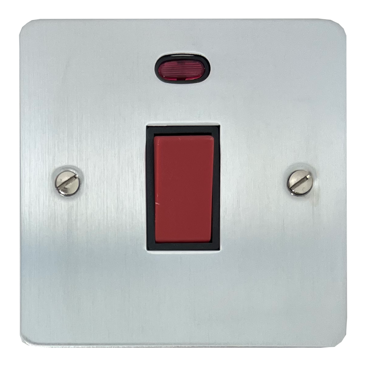 Flat Satin Chrome 45A DP Switch with Neon (Black Insert/Red Switch) - G+H FSC46B