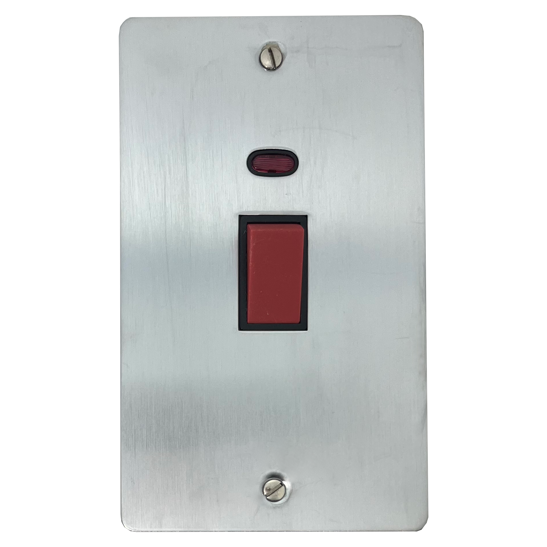Flat Satin Chrome 45A DP Switch with Neon (Black Insert/Red Switch/Vertical Plate)