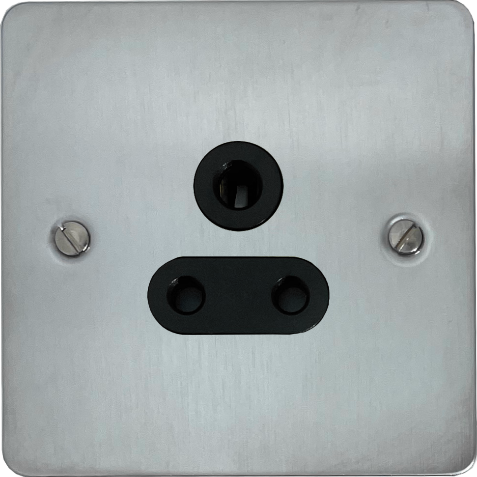 Flat Satin Chrome 5A 3 Pin Socket (Black Insert) - G+H FSC59B