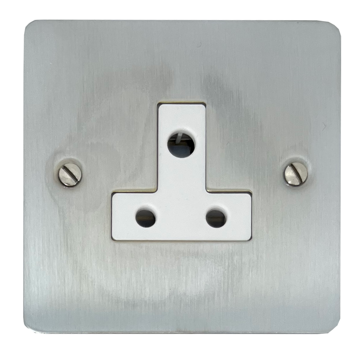 Flat Satin Chrome 5A 3 Pin Socket (White Insert)