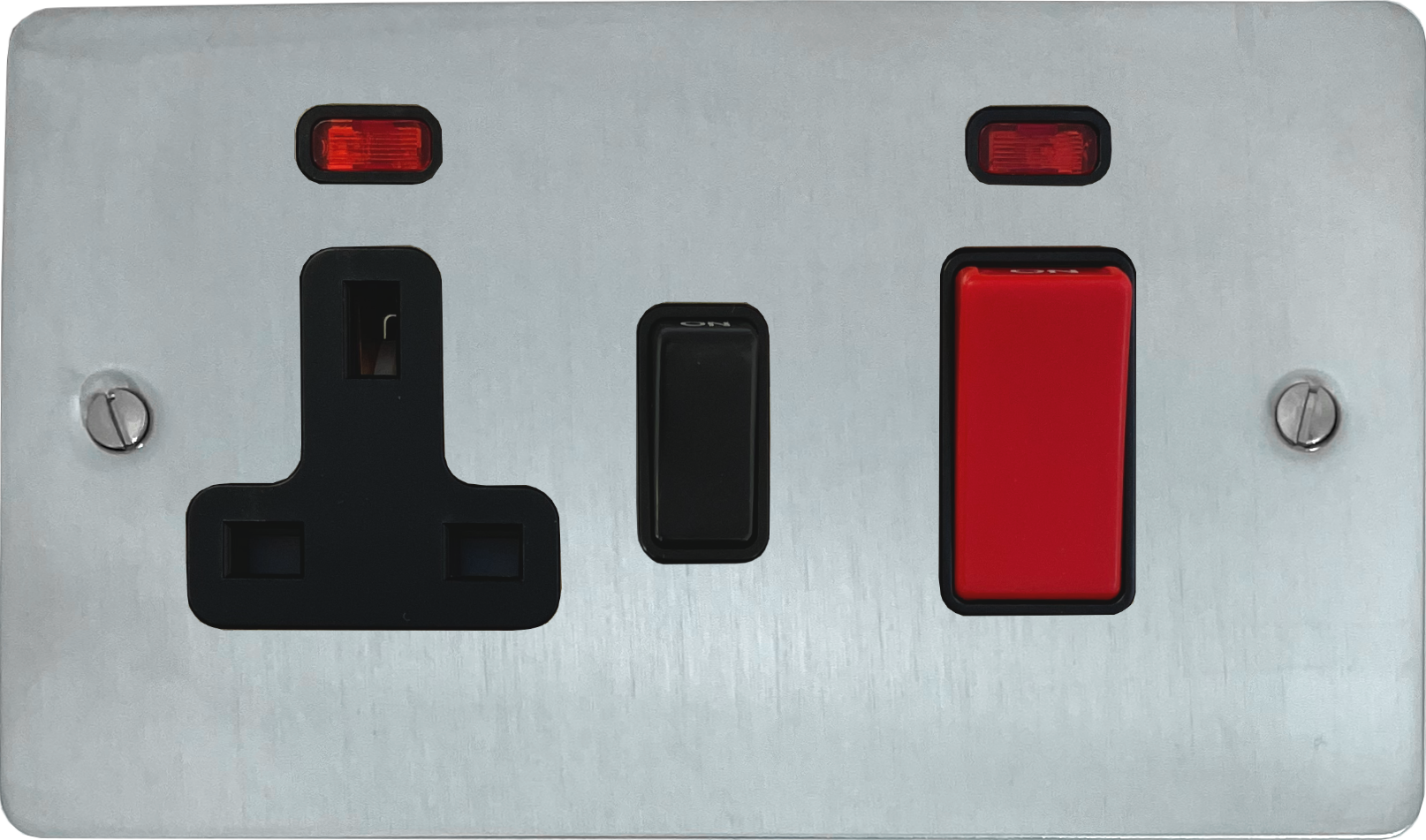 Flat Satin Chrome Cooker Switch with Socket (Black Switch) - G+H FSC29B