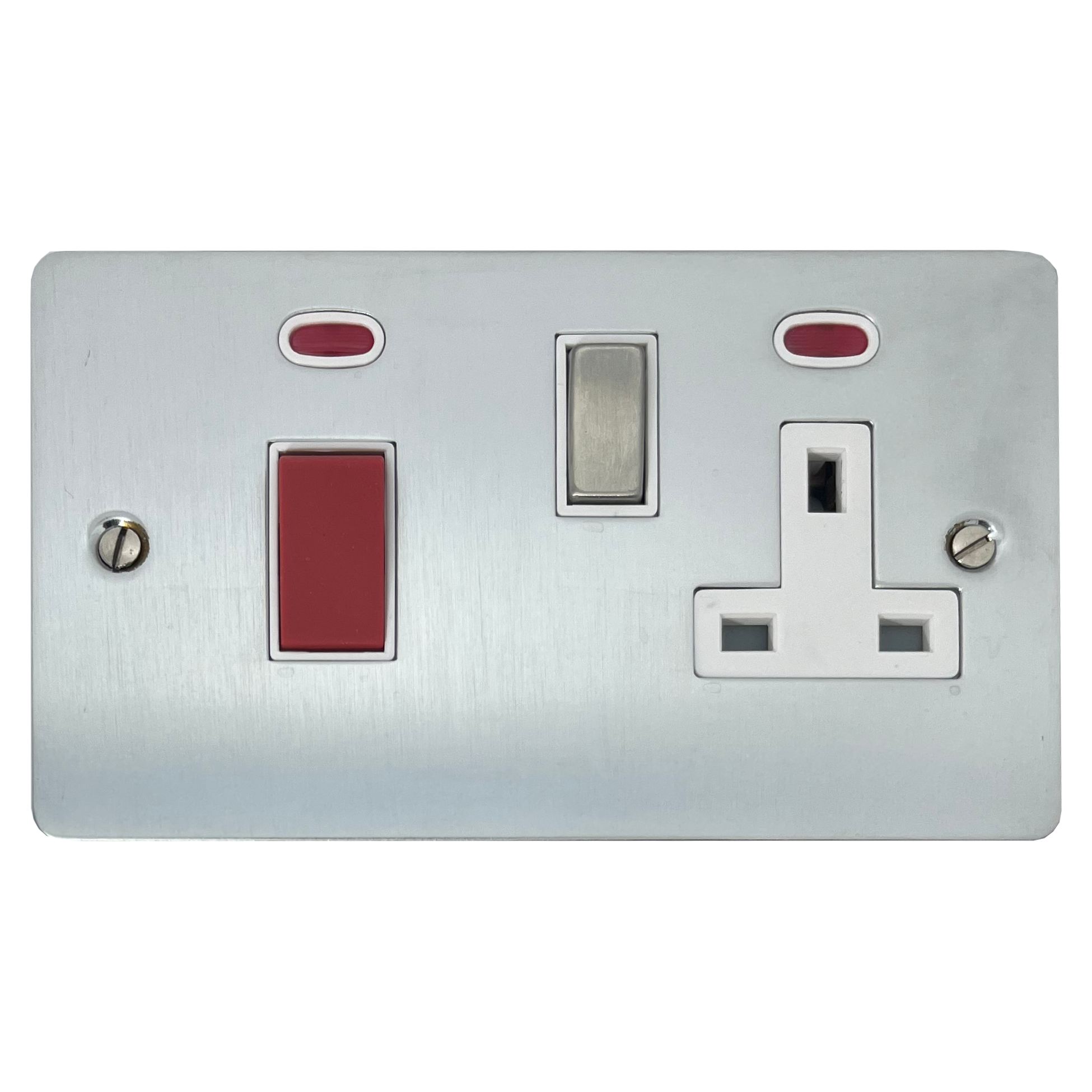 Flat Satin Chrome Cooker Switch with Socket (White Insert/Satin Chrome Switch)