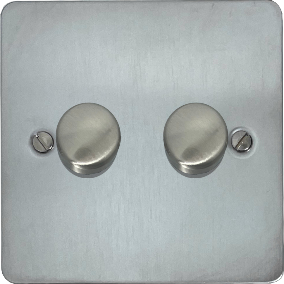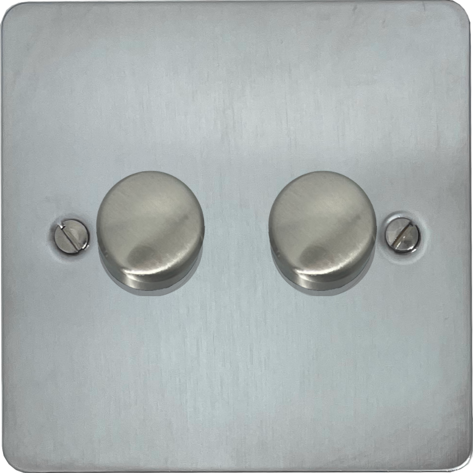 Flat Satin Chrome LED Dimmer (2 Gang)