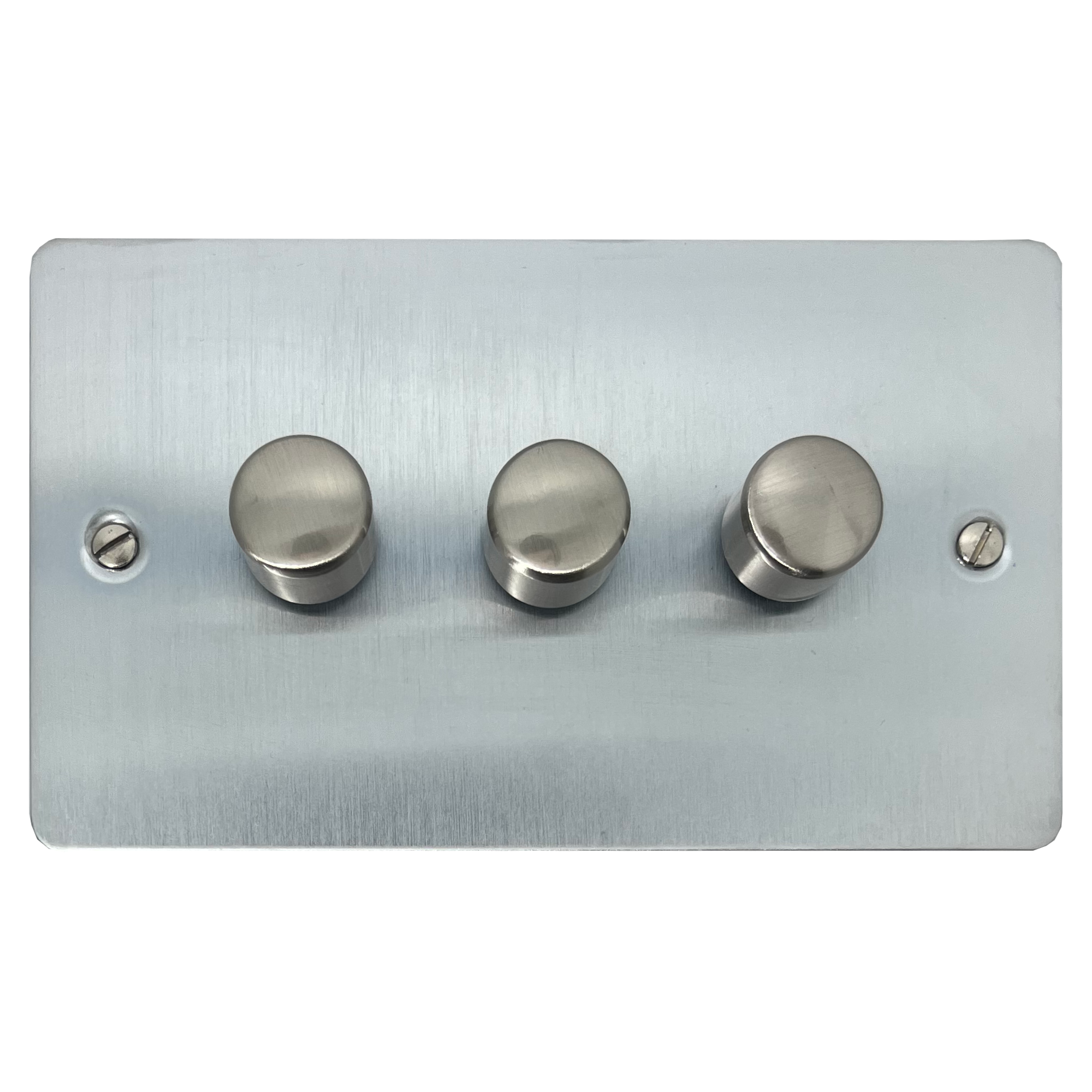 Flat Satin Chrome LED Dimmer (3 Gang)