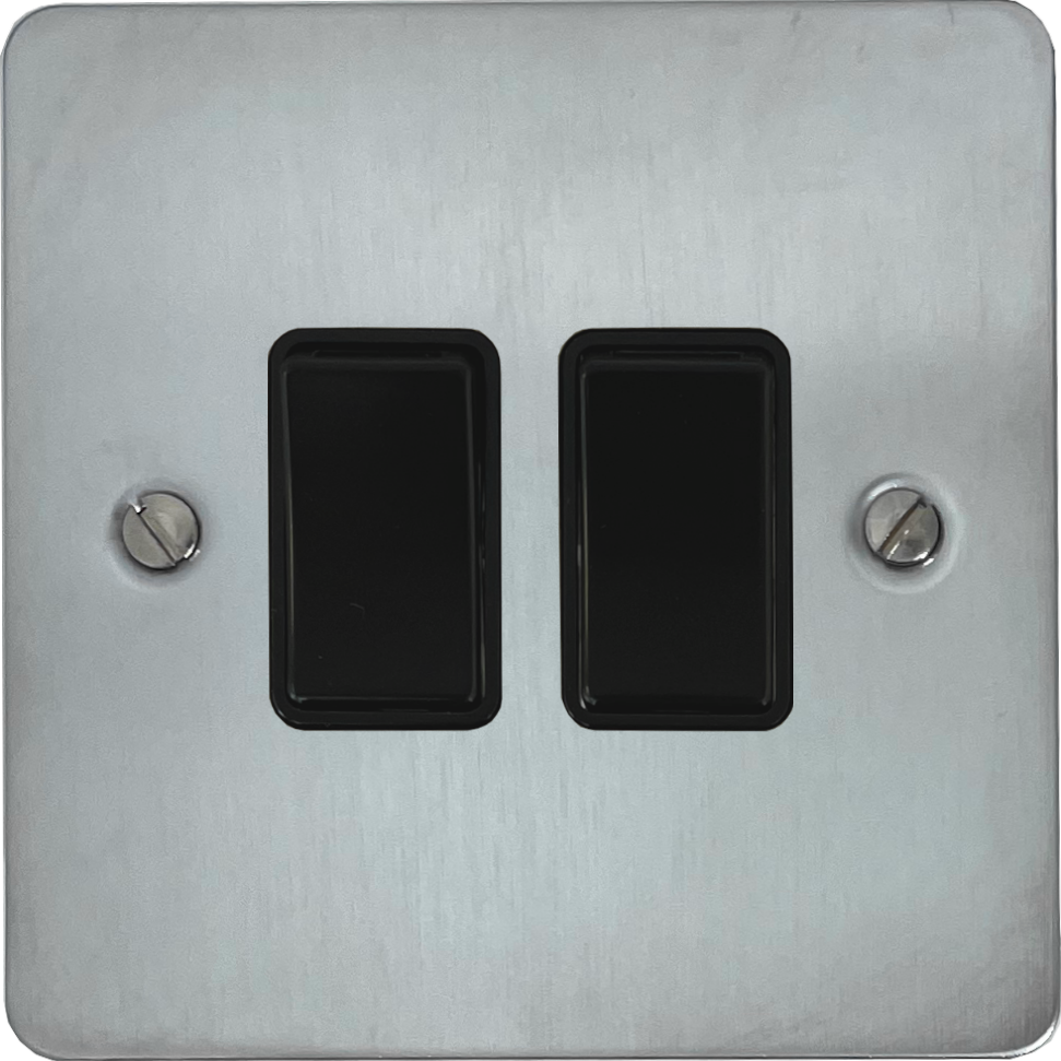 Flat Satin Chrome Light Switch (2 Gang/Black Switches) - G+H FSC2B