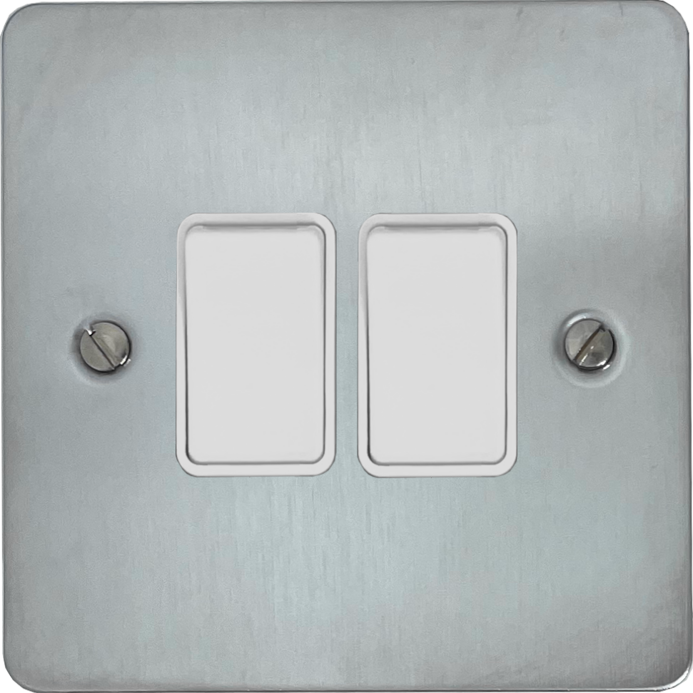 Flat Satin Chrome Light Switch (2 Gang/White Switches) - G+H _RIVET65C