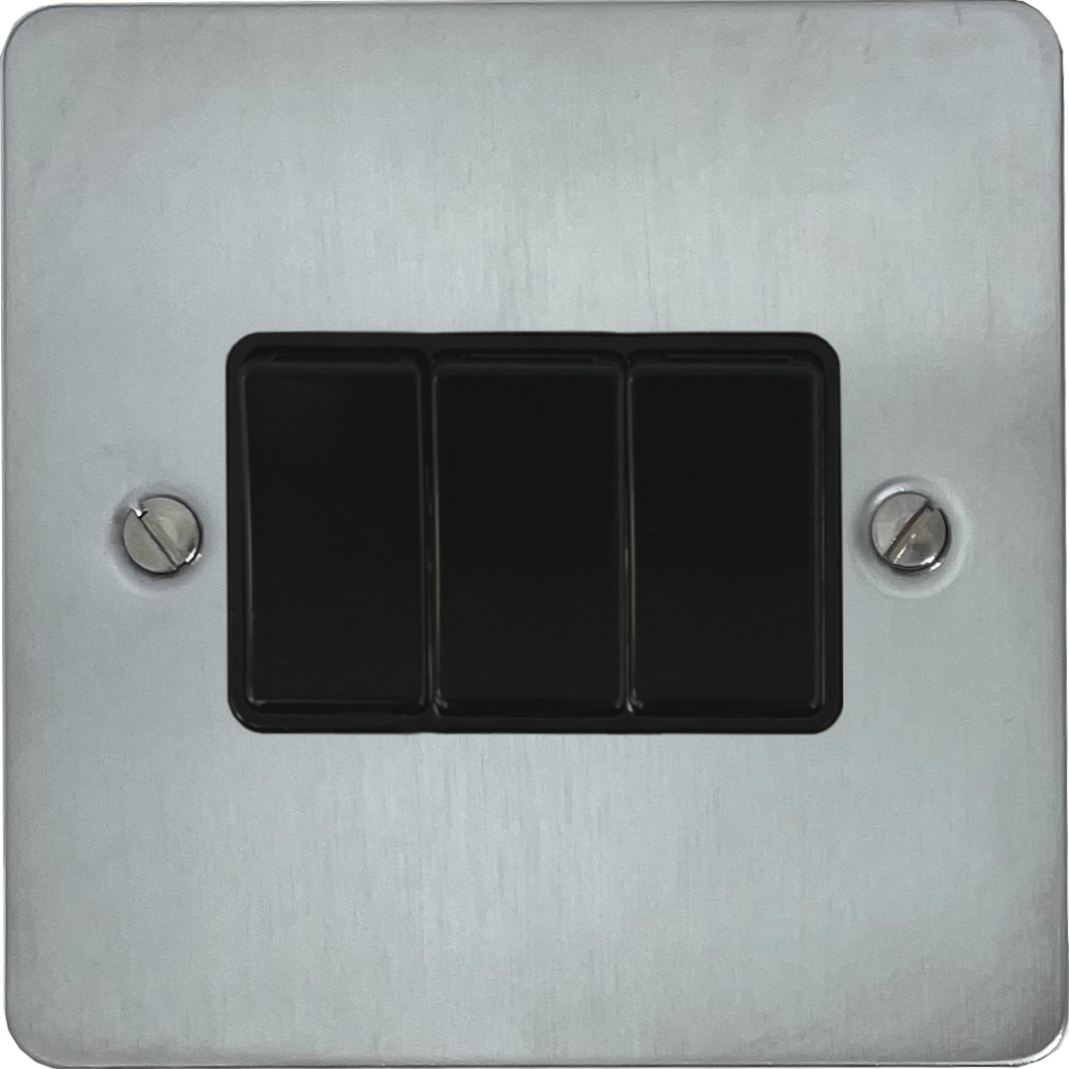 Flat Satin Chrome Light Switch (3 Gang/Black Switches) - G+H FSC3B