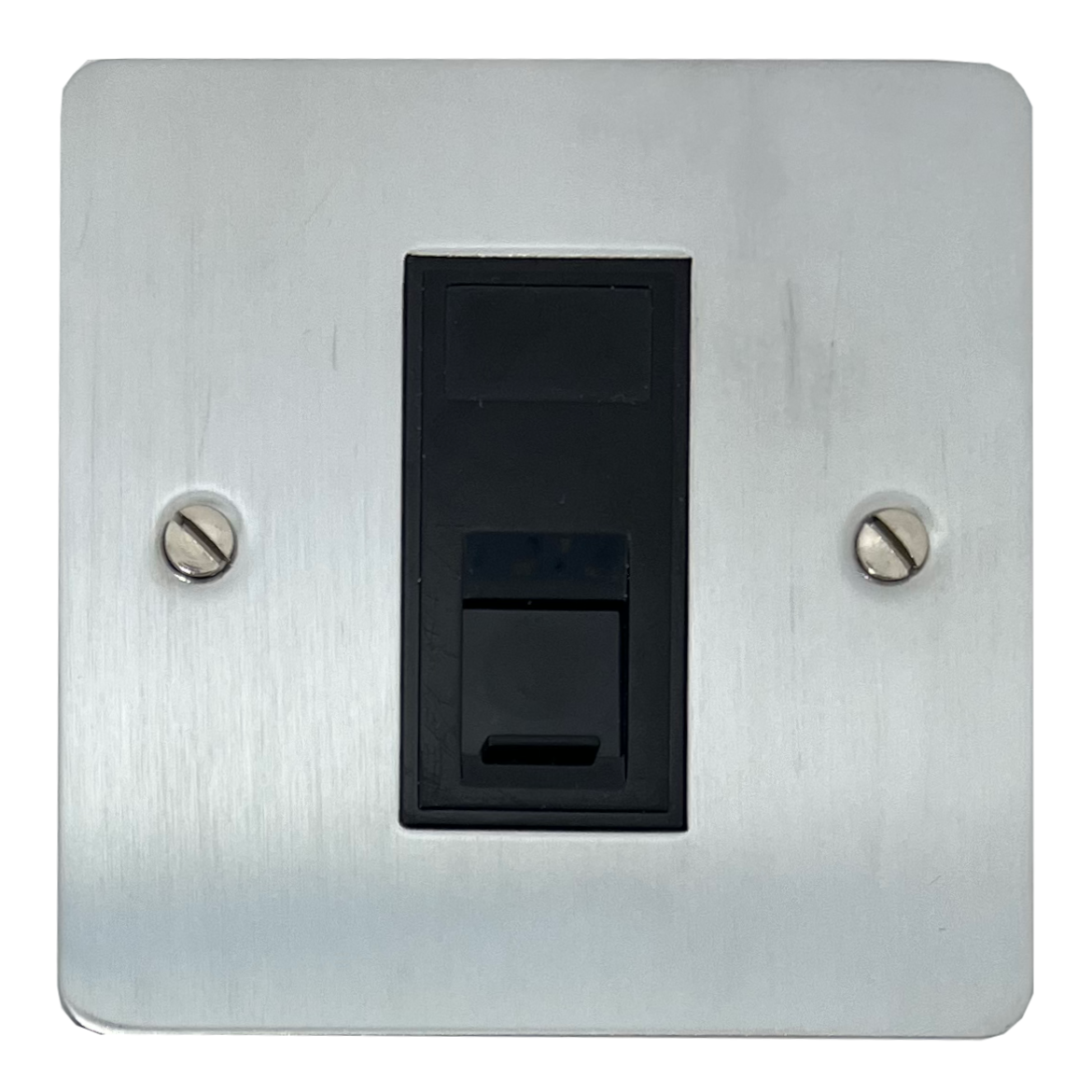 Flat Satin Chrome RJ45 Socket (1 Gang/Black Insert)