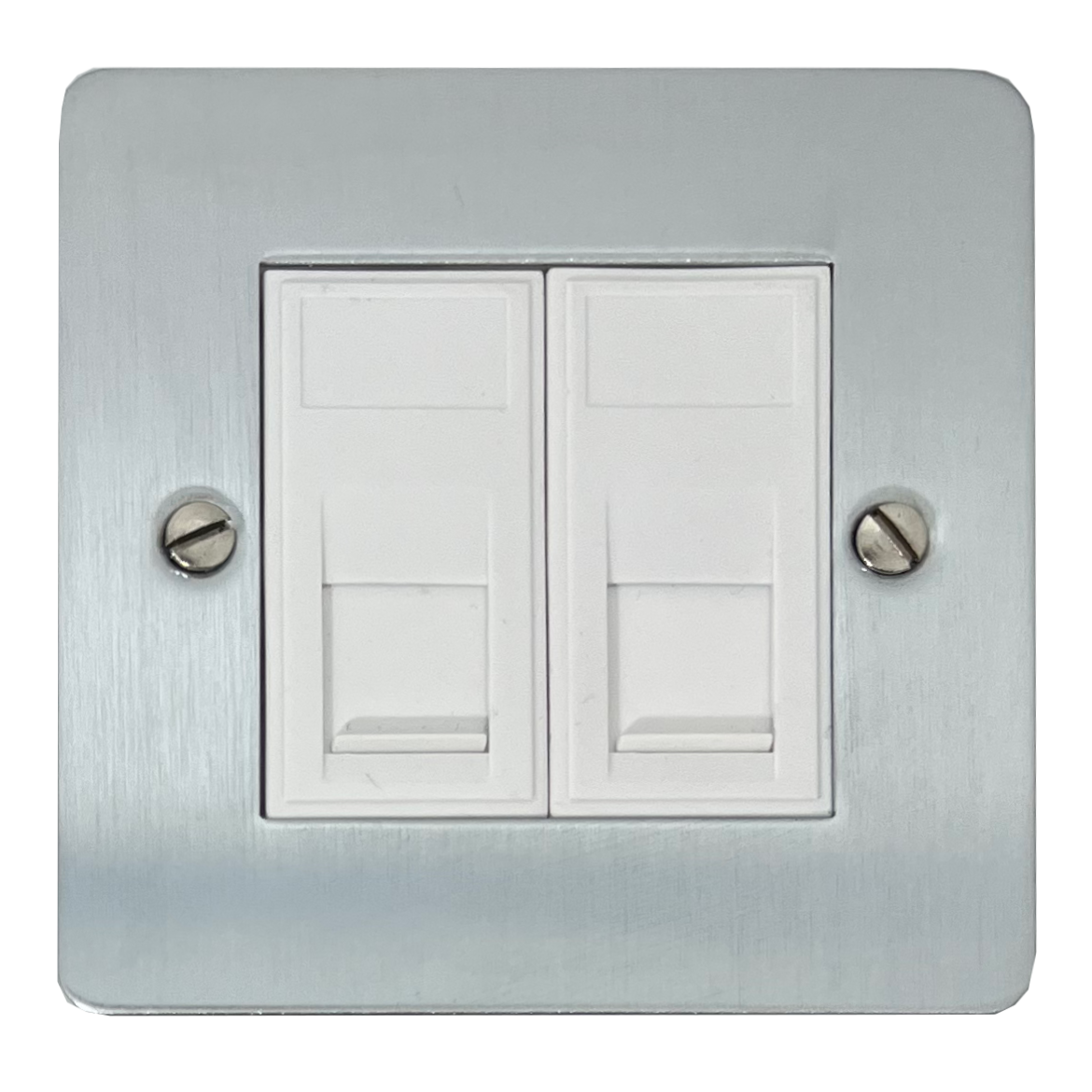 Flat Satin Chrome RJ45 Socket (2 Gang/White Insert)