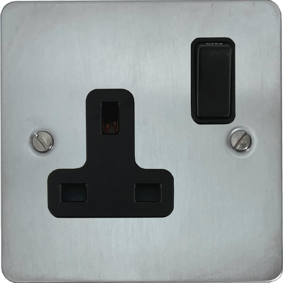 Flat Satin Chrome Single Socket (Black Switch) - G+H FSC9B