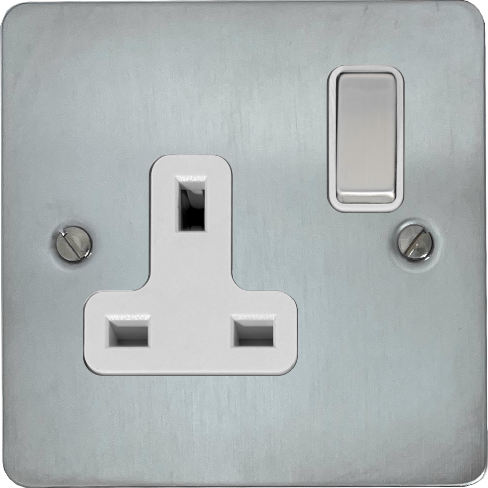 Flat Satin Chrome Single Socket (White Insert/Satin Chrome Switch) - G+H FSC209