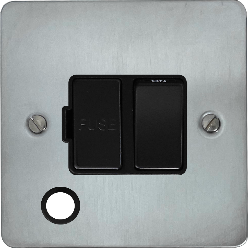 Flat Satin Chrome Switched Fused Spur with Flex Outlet (Black Insert/Black Switch) - G+H FSC56B