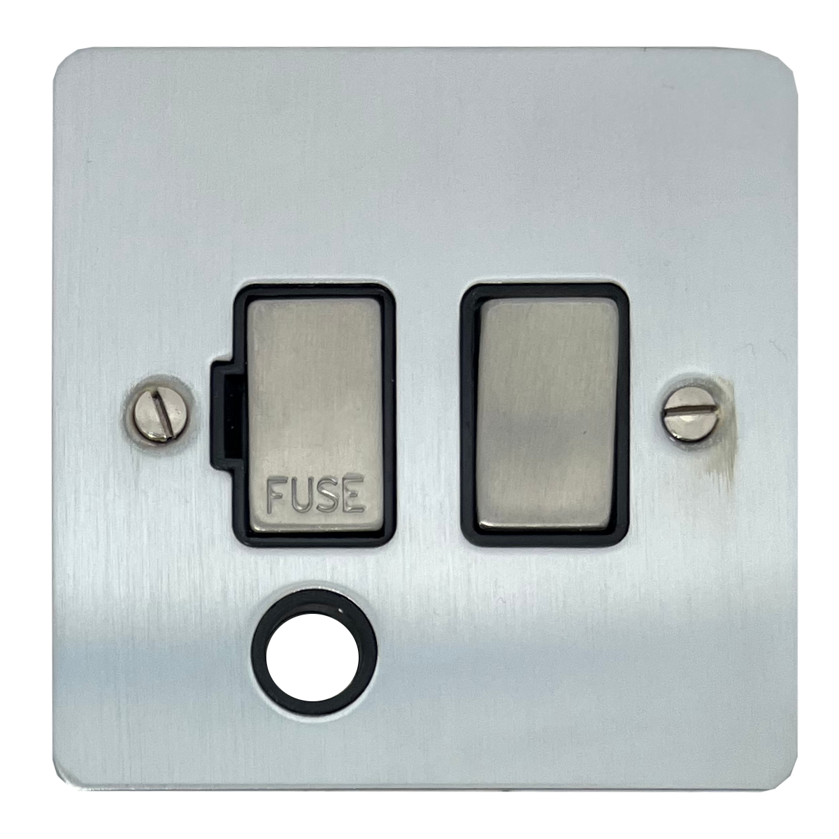 Flat Satin Chrome Switched Fused Spur with Flex Outlet (Black Insert/Satin Chrome Switch) - G+H FSC356