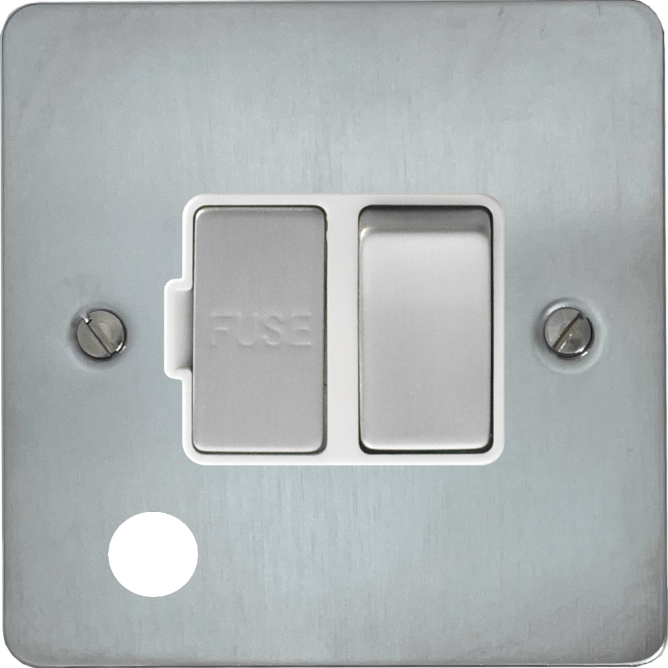 Flat Satin Chrome Switched Fused Spur with Flex Outlet (White Insert/Satin Chrome Switch) - G+H FSC256