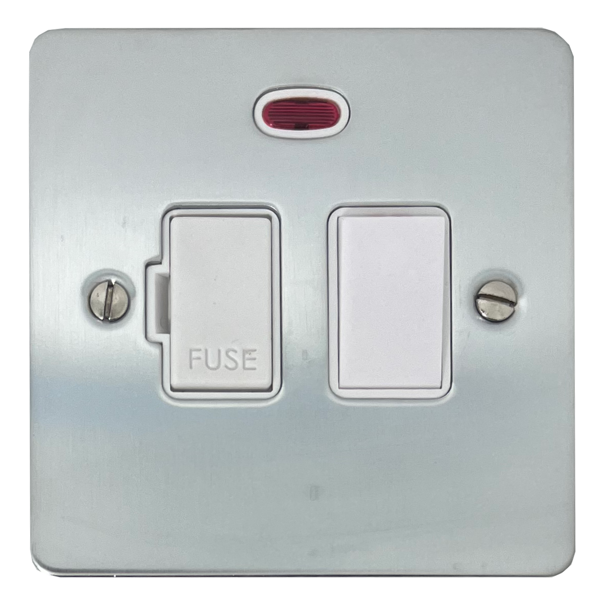 Flat Satin Chrome Switched Fused Spur with Neon (White Insert/White Switch) - G+H FSC27W