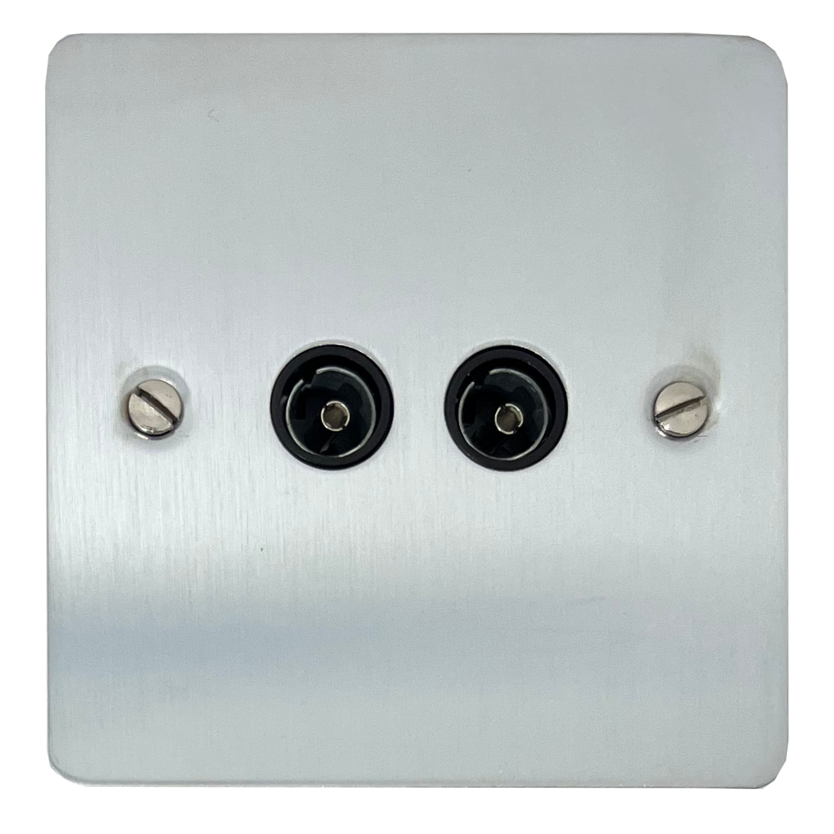Flat Satin Chrome TV Socket (2 Gang/Black Insert)