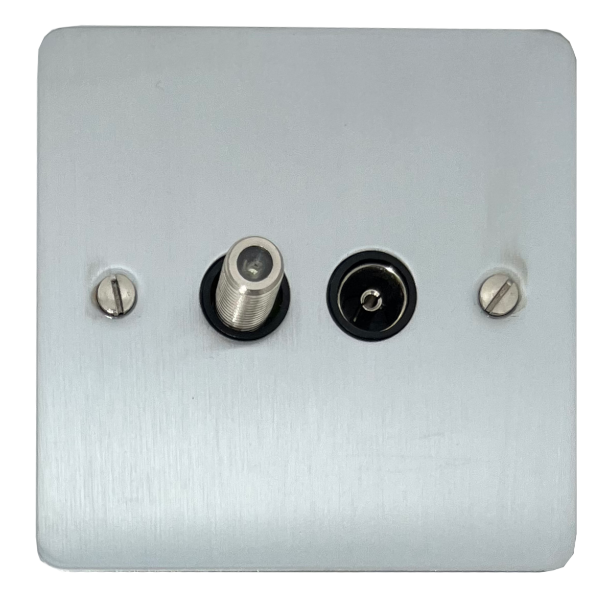 Flat Satin Chrome TV/Satellite Socket (Black Insert)