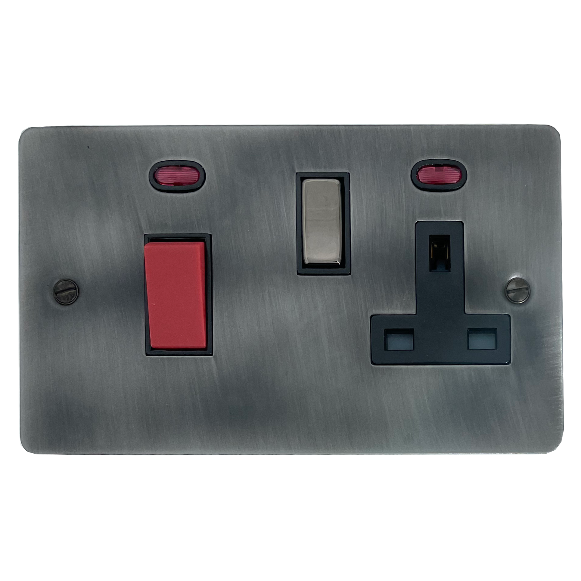 Flat Slate Effect Cooker Switch with Socket (Black Nickel Switch)