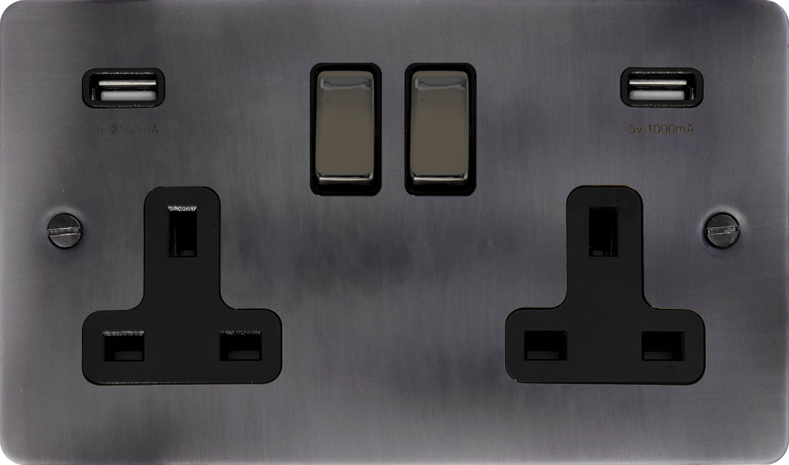 Flat Slate Effect Double Socket with USB (Black Nickel Switches) - G+H FSL3910