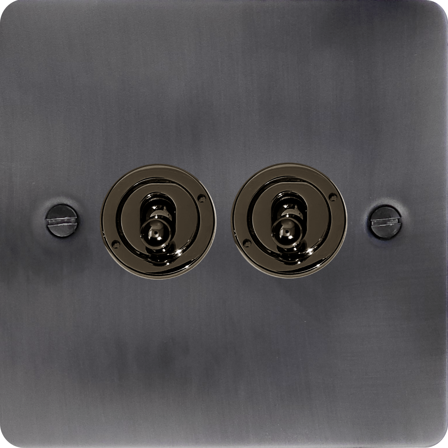 Flat Slate Effect Toggle Switch (2 Gang/Black Nickel Toggle) - G+H FSL382-BN