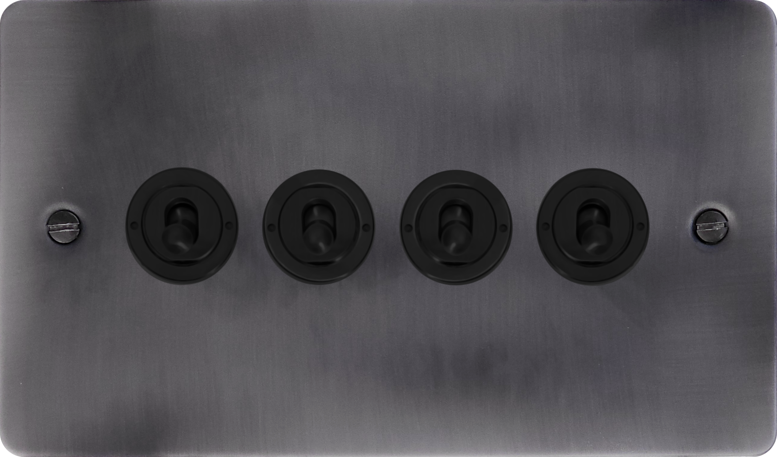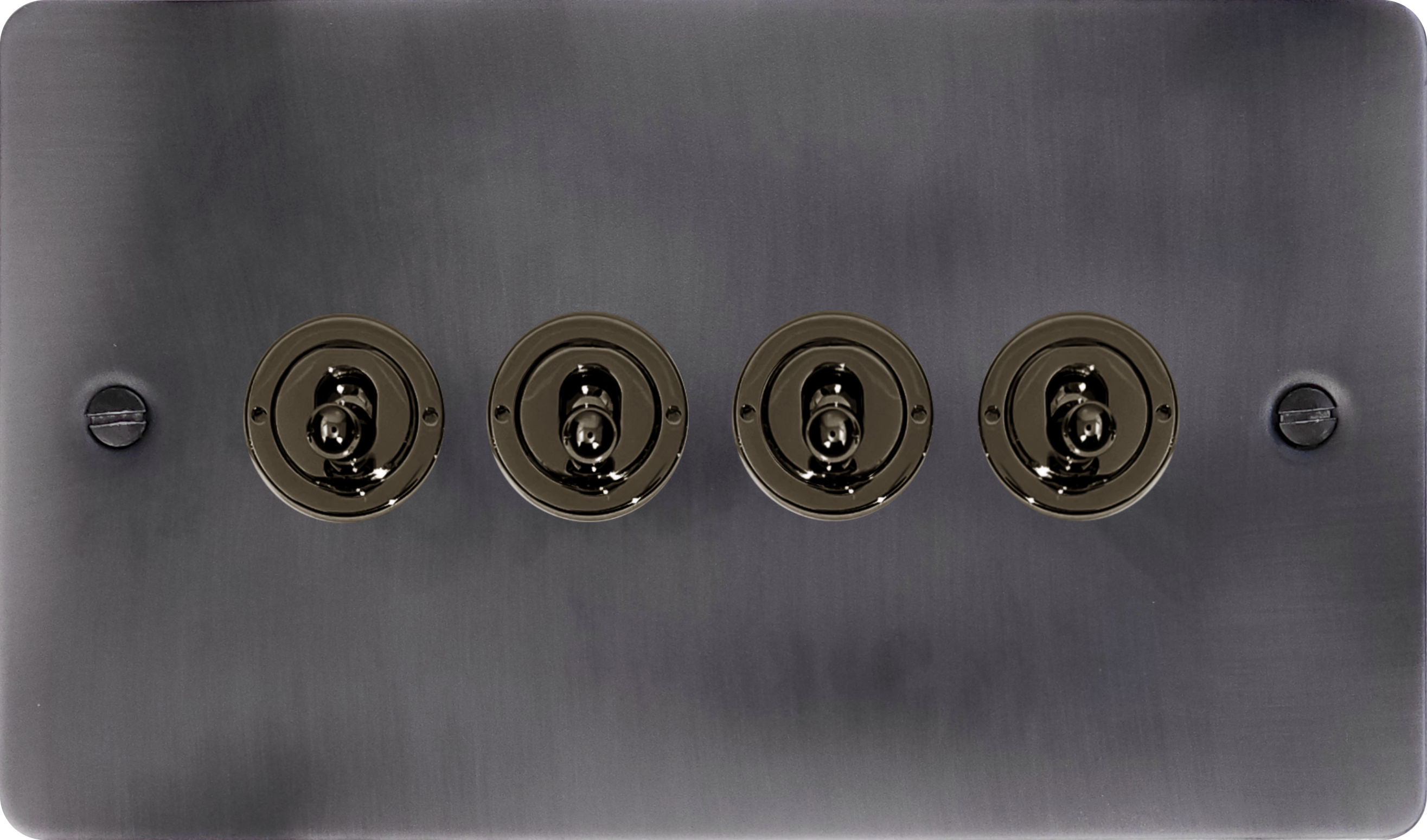 Flat Slate Effect Toggle Switch (4 Gang/Black Nickel Toggle) - G+H FSL384-BK