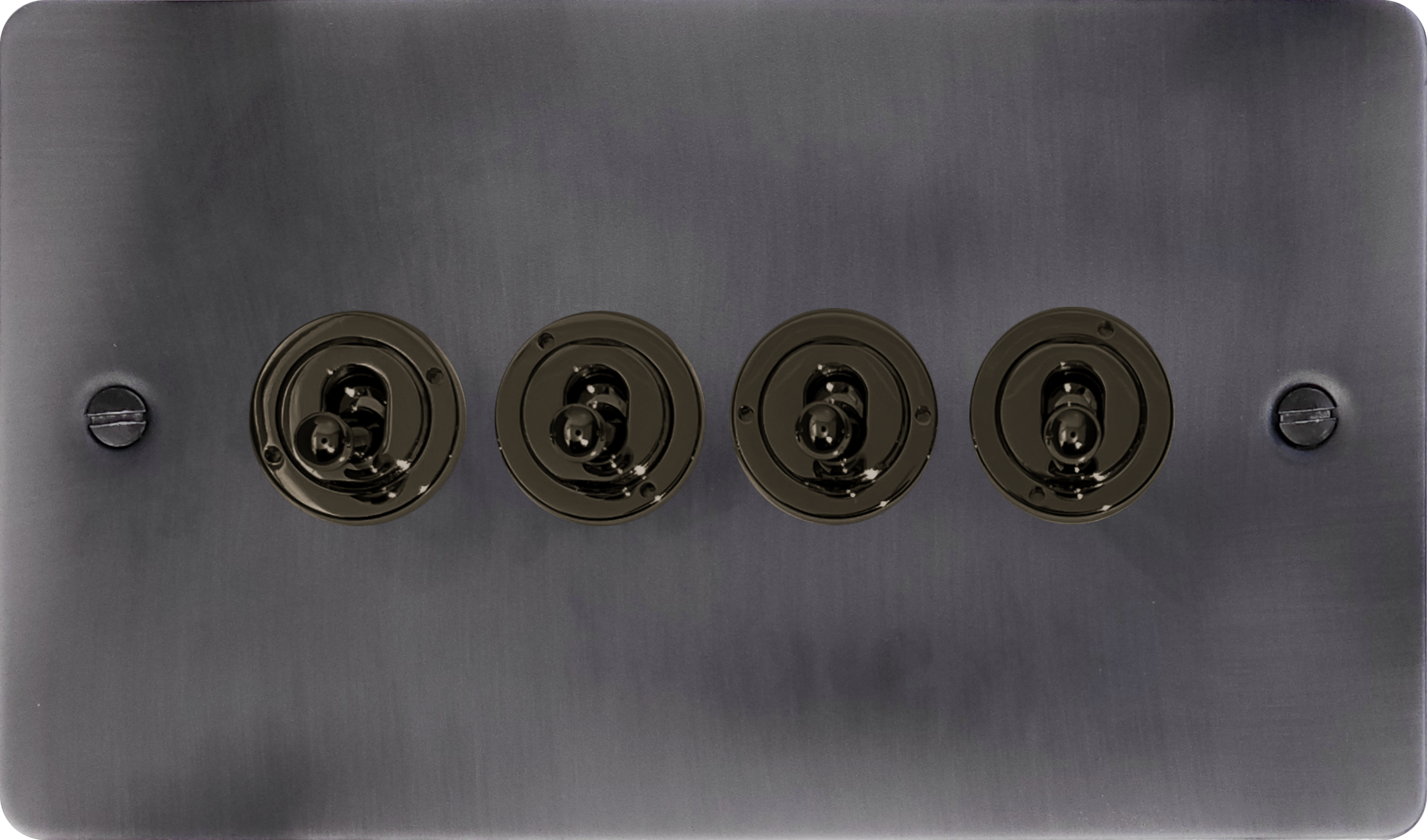 Flat Slate Effect Toggle Switch (4 Gang/Black Nickel Toggle) - G+H FSL384-BN