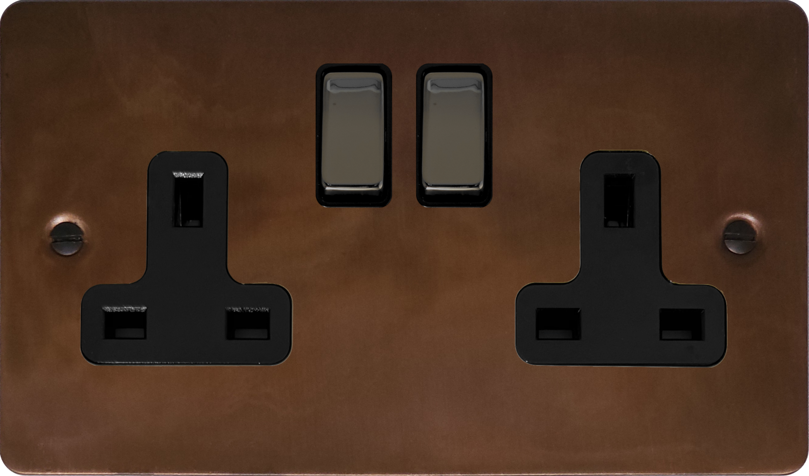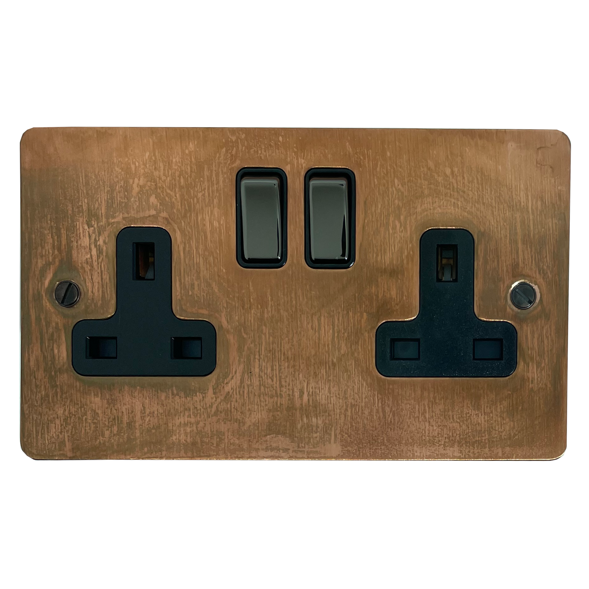 Flat Tarnished Copper Double Socket (Black Nickel Switch) - G+H FTC310