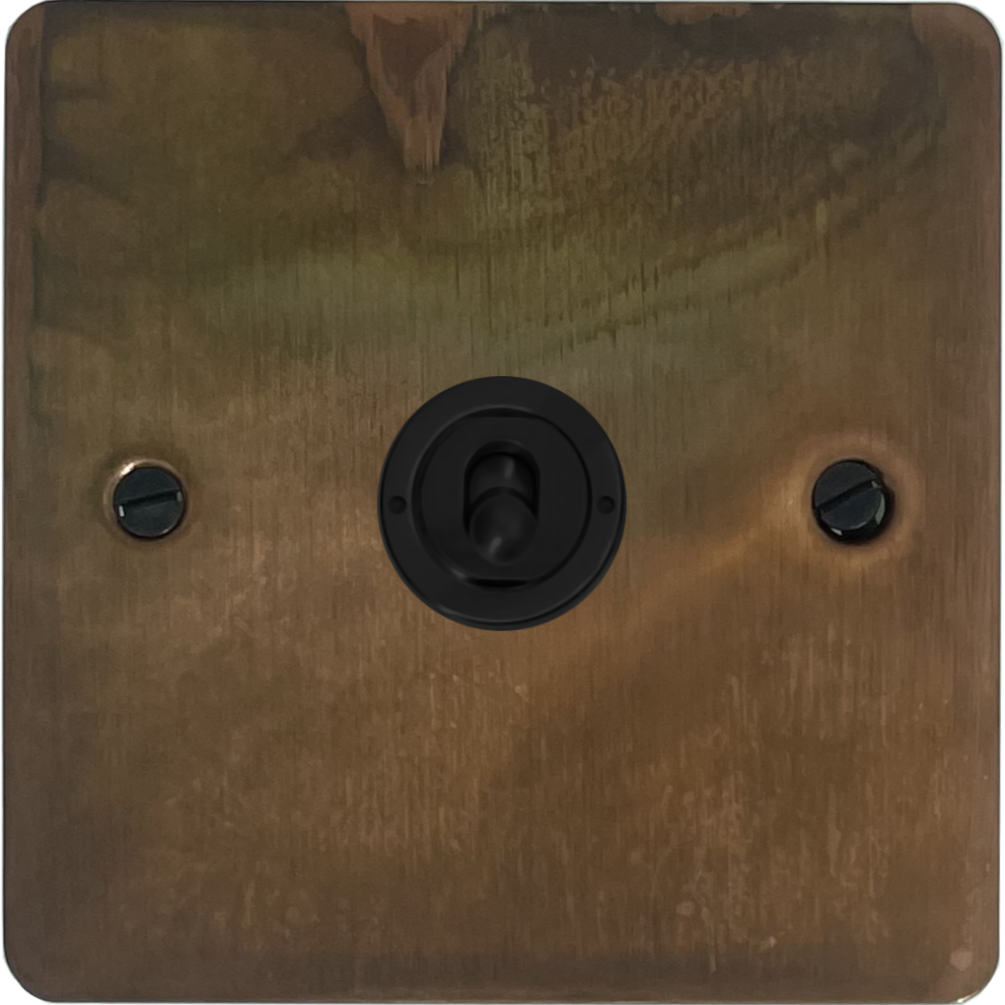 Flat Tarnished Copper Intermediate Toggle Switch (1 Gang/Matt Black Toggles) - G+H FTC385-FBK